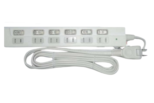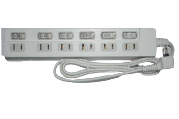 6個別スイッチ/LED付き 耐トラッキングプラグ L固定プラグ・ニッケルプラグ刃 雷サージ付き・埃防止シャッター付き 受刃カバー/栓刃ホルダー:ユリア樹脂 電線::VFF2×1.8mm2 定格:15A 125V パッケージ:ブリスタ-+台紙 |