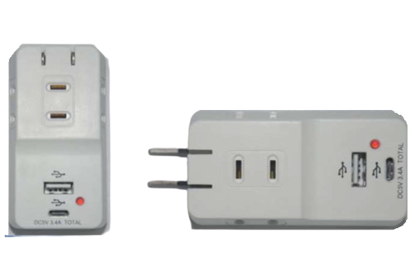 USB出力5V 3.4A(USB-A2PORT TOTAL) AC3口(正面/側面×2)14A 100V 雷サージ(LEDランプ付) 折り畳みプラグ 耐トラッキングプラグ ニッケルプラグ刃 パッケージ:ブリスタ-+台紙 |
