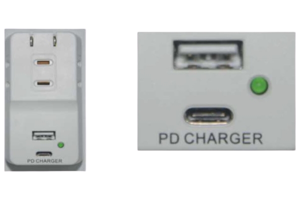 type-C PD 5V3A/9V2A/12V1.5A USB-A 5V 3.4A(TOTAL) OUTPUT出力18W(TOTAL) 耐トラッキング L型固定プラグ ニッケルプラグ刃 埃防止シャッター付 受刃カバー/栓刃ホルダー:ユリア樹脂 電線:VFF2×1.8mm2 定格:14A 100V パッケージ:ブリスタ-+台紙 |